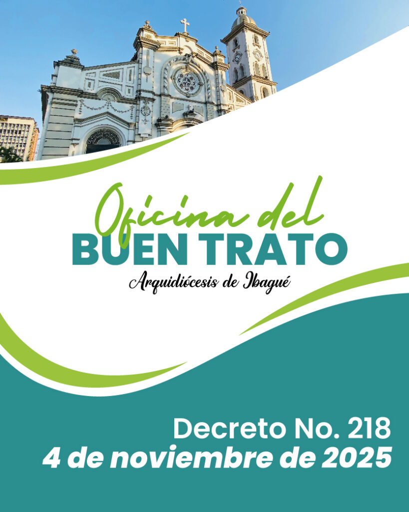 La Iglesia Católica siempre se ha preocupado por cuidar de todos, especialmente de los más necesitados y vulnerables, y unidos a la Iglesia Universal y las disposiciones de la Conferencia Episcopal de Monseñor Orlando Roa Barbosa, Arzobispo de Ibagué, por medio del Decreto 211 del 27 de agosto de 2025, formaliza las Líneas Guía y las Líneas Operativas de la Arquidiócesis de Ibagué. Este decreto deroga el Decreto N° 218 del 12 de febrero de 2014 y permite Encuentre a continuacíón el texto completo:
